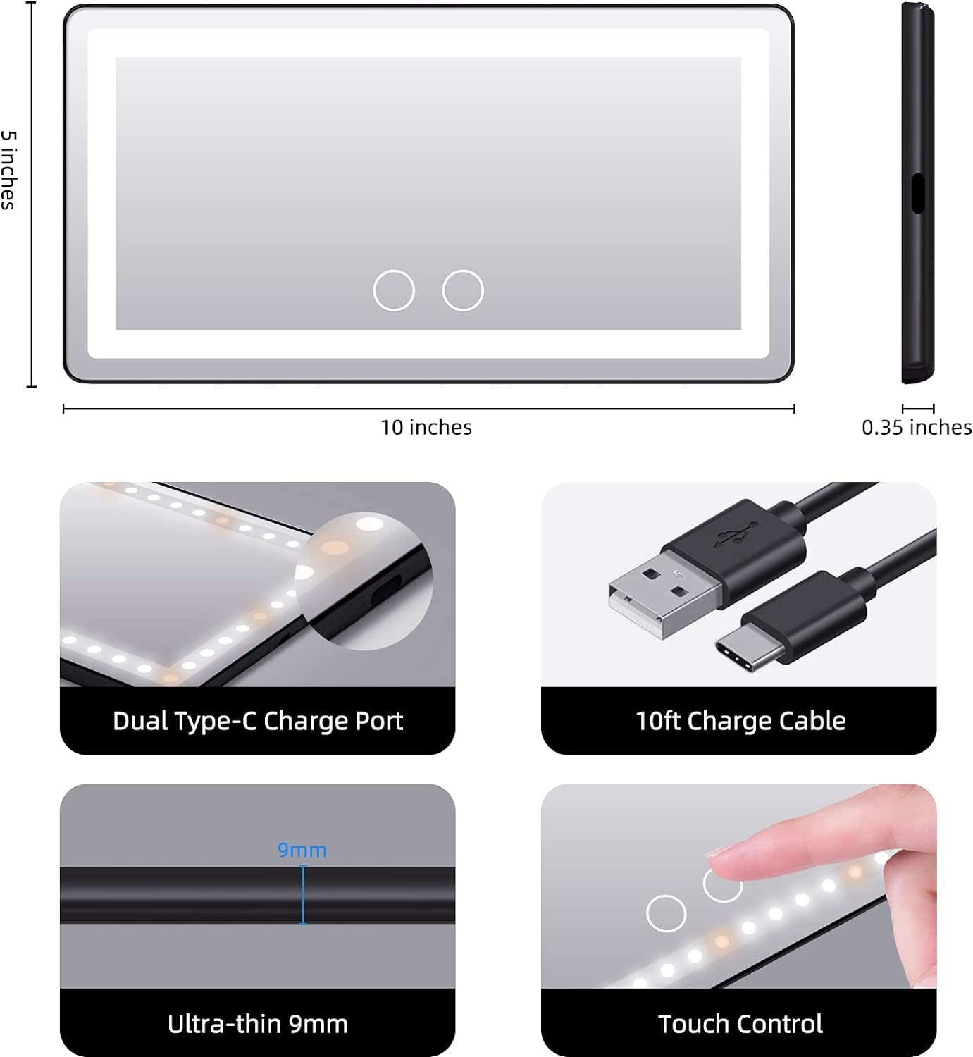 Adjust brightness or switch light modes with a simple touch. Dual Type-C ports and a 10ft USB cable give flexible power options.